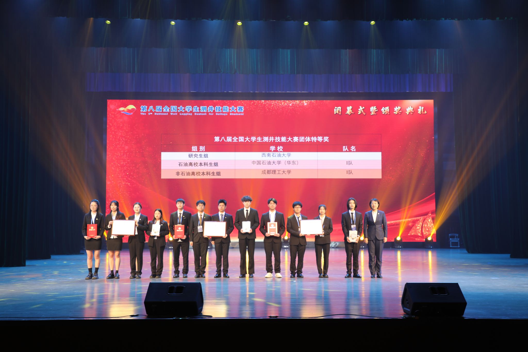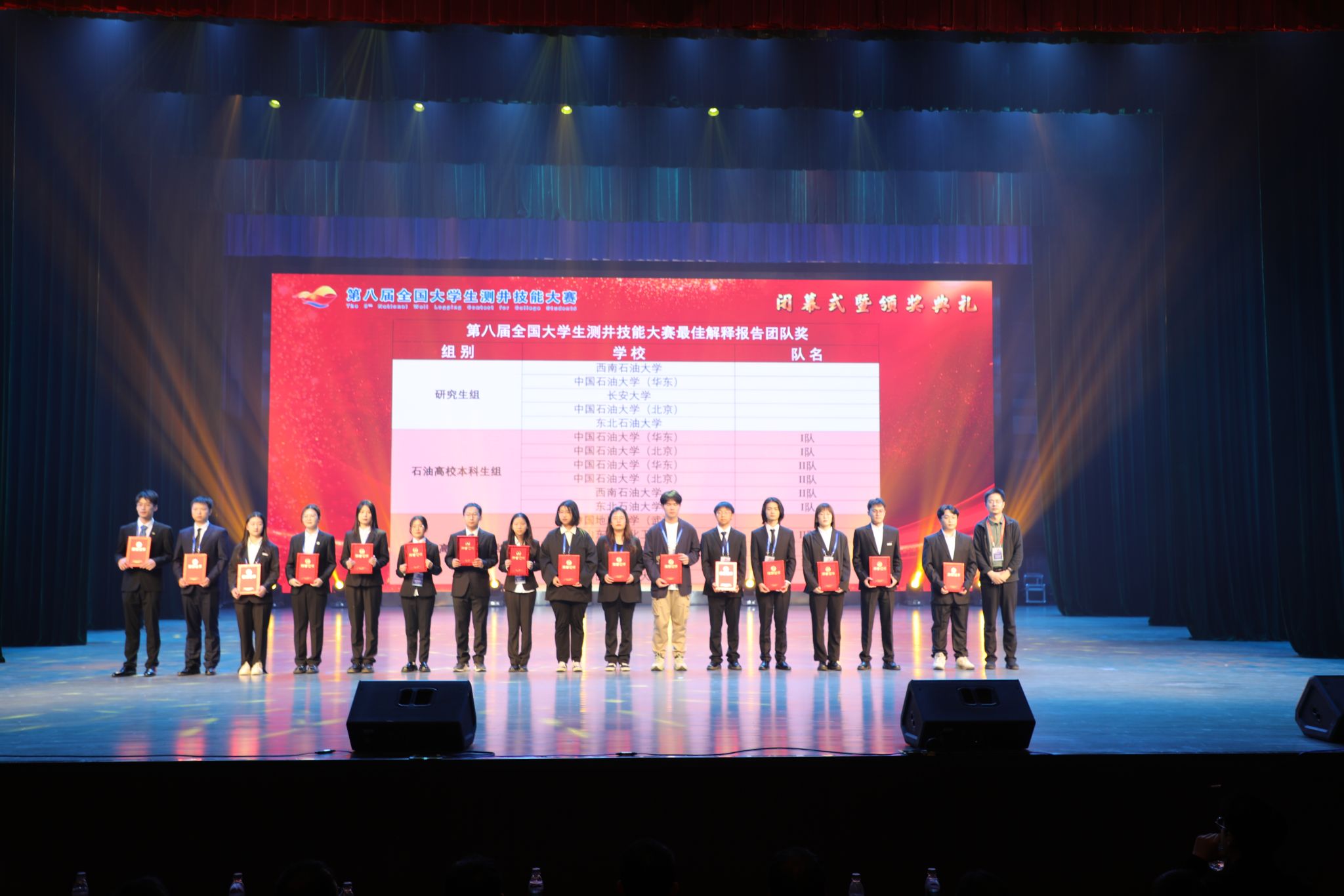 milan米兰体育官网副校长李伟、石颖,中国石油学会测井专业委员会秘书长张辛耘,中国石油集团咨询中心资深专家汤天知,中国石油大庆油田有限责任公司首席技术专家谢荣华,中国石油学会测井专业委员会委员、中石化经纬有限公司处理解释中心主任赵俊峰,中国石油学会测井专业委员会委员、中油测井西南分公司副经理、总地质师罗利,中国石油学会测井专业委员会委员、中国石油大学(华东)教授张锋,中国石油集团测井有限公司培训中心主任张荣新,中海油服油田技术事业部首席工程师张国华,中国石油集团测井有限公司人力资源部副经理、党委组织部副部长王佳凡,中国石油集团测井有限公司大庆分公司党委书记于继崇,各高校、大赛协办单位相关负责人、评审专家以及参赛团队参加闭幕式。