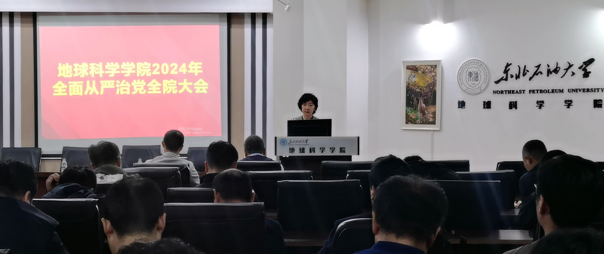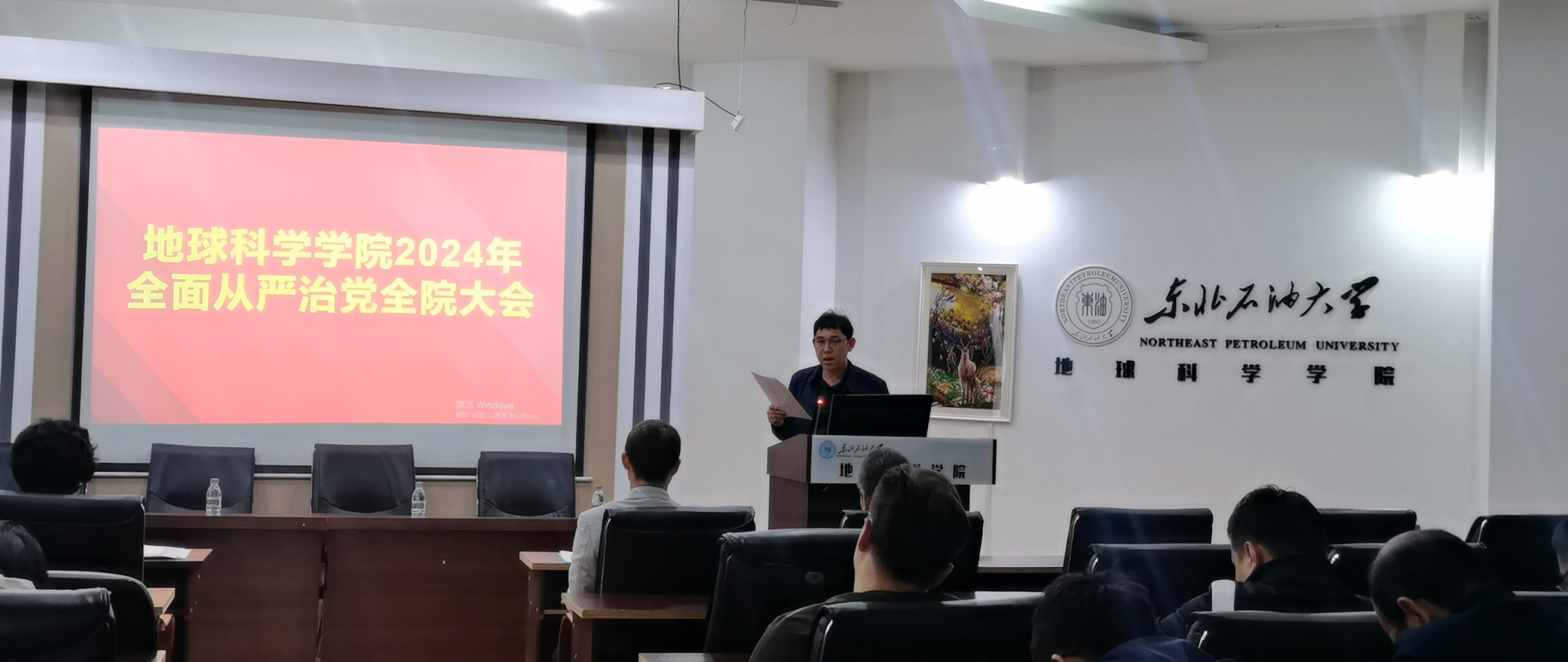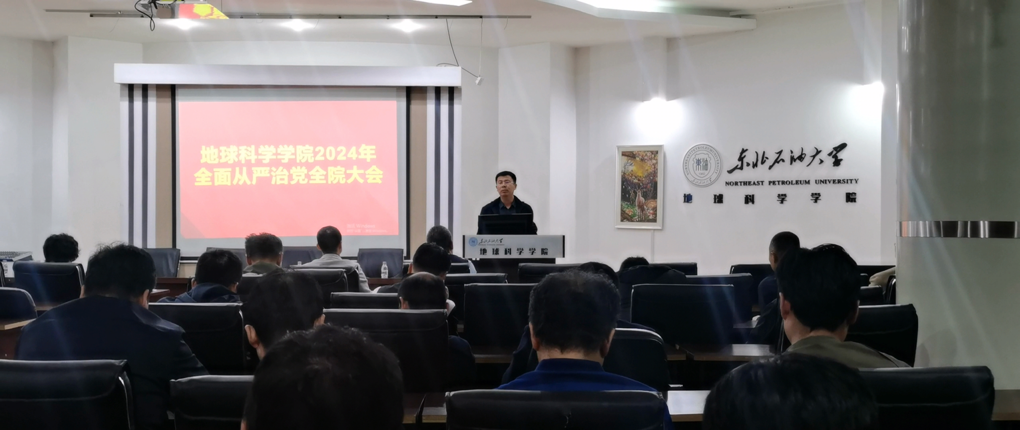 2024年5月11日下午,milan米兰体育官网召开2024年全面从严治党全院大会,全体教职工参加会议,学院党委书记韦丹宁主持会议。