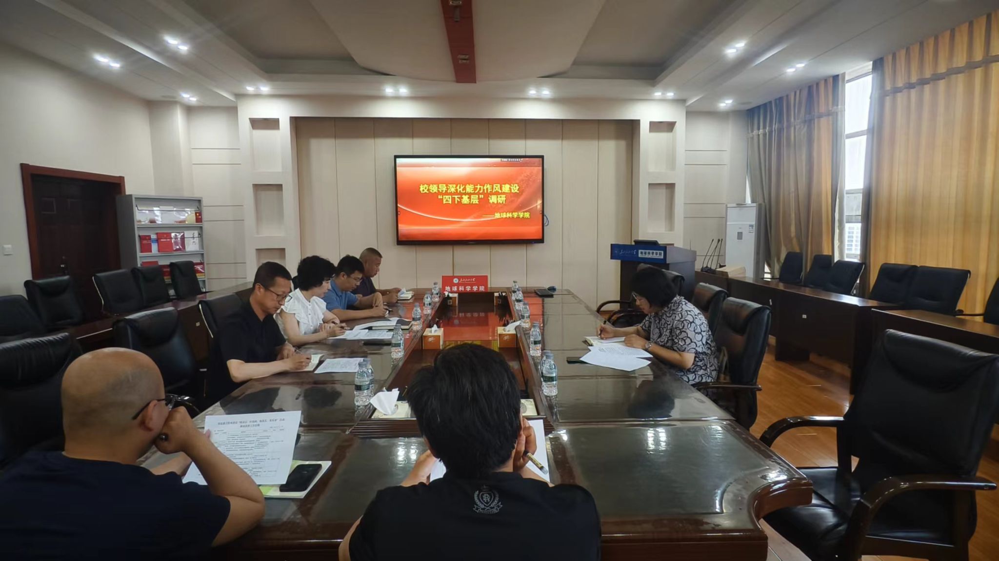 7月15日下午,副校长石颖深入milan米兰体育官网开展“四下基层”专题调研,调研在地科馆514会议室进行。学院党委班子成员以及各系、所主任参加会议,学院党委书记韦丹宁主持会议。