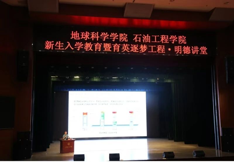 讲座在踏着铁人脚步走的歌声中拉开序幕,裴明波书记以学长的身份向新生同学们分享他的学习与工作经历,从自己的大学生活谈到今日的东油,感慨东油的变化与发展,随后他又巧妙融合时代脉搏与个人智慧,针对地科与油工专业的学子,深刻剖析了“竞争之锐”、“技能之精”、“维度之广”与“能量之深”四大核心要素,激励同学们只要心怀进取之志,矢志不渝,必能在成长的征途上不断超越,实现自我飞跃,攀登至知识与能力的巅峰。