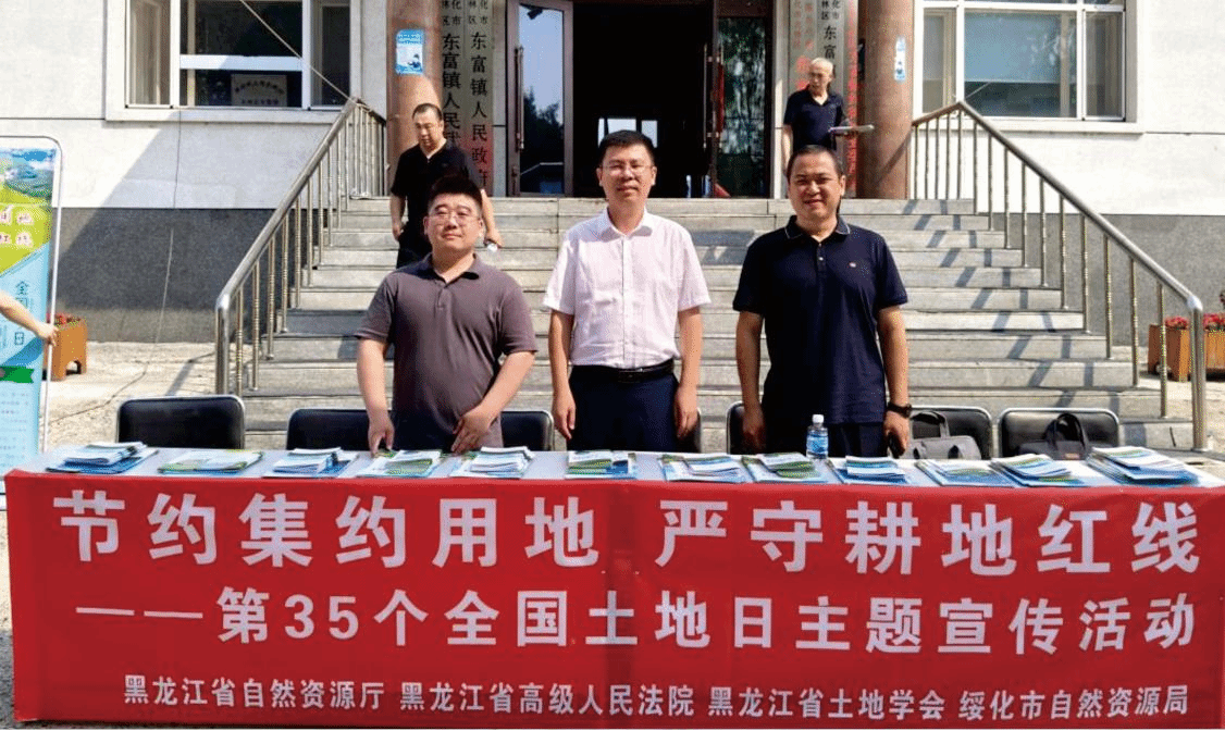 6月25日,黑龙江省自然资源厅、黑龙江省高级人民法院、黑龙江省土地学会、绥化市自然资源局、中国地质调查局沈阳地质调查中心、milan米兰体育官网、绥化市自然资源局北林分局和东富镇人民政府等8家单位在绥化市东富镇政府共同举办第35个全国土地日黑土地保护主题宣传活动。活动主题为“节约集约用地,严守耕地红线”。milan米兰体育官网与沈阳地质调查中心生态地质室联合宣言《守护寒地黑土、筑牢北国粮仓》,强化资源保护责任担当。