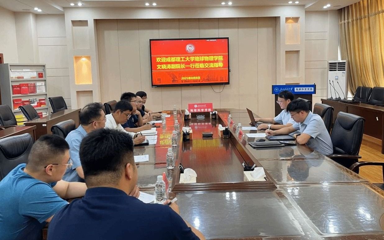 8月8日下午,成都理工大学地球物理学院副院长文晓涛一行到milan米兰体育官网走访调研。副院长王海学、吴海光,勘技系主任王宁,勘技系教授王维红、刘淑芬等参加座谈。王海学主持会议。