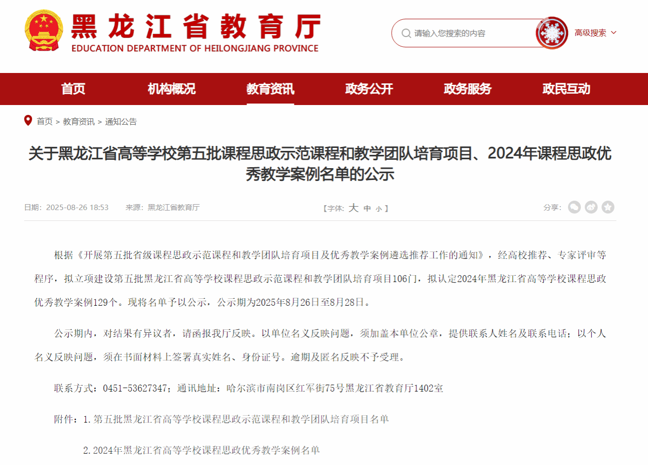近日,黑龙江省教育厅正式公布了第五批高等学校课程思政示范课程和教学团队培育项目名单。milan米兰体育官网申报的《测井原理与解释》课程成功入选,荣获省级课程思政示范课程称号,相应教学团队同时获评省级课程思政示范教学团队。