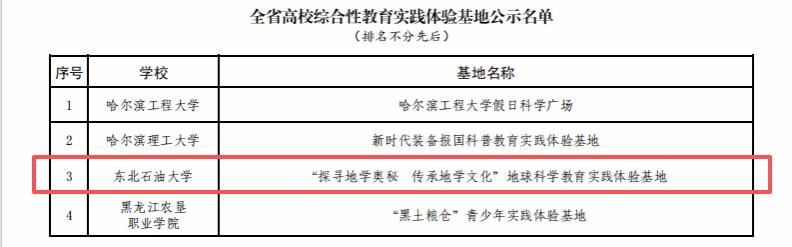 日前,黑龙江省教育厅公布“黑土铸魂”高校思想政治工作质量提升综合改革与精品建设项目入选名单,milan米兰体育官网“探寻地学奥秘 传承地学文化”地球科学教育实践体验基地成功入选全省高校综合性教育实践体验基地。