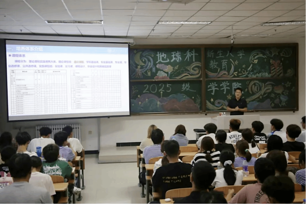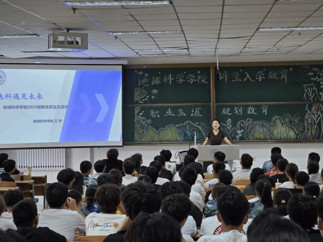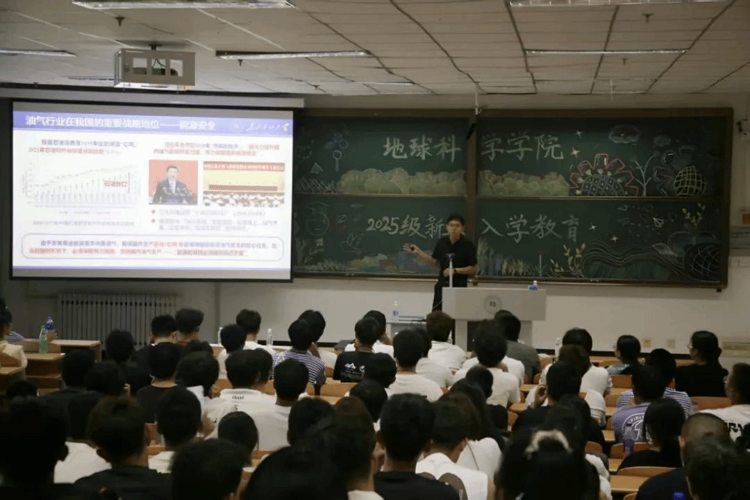 学院党委书记韦丹宁以《开启地学人生 赋能能源未来》为题讲授“开学第一课”,从国家能源战略需求切入,系统阐释地学学科的时代价值,引导新生建立“专业成才一行业建功一国家贡献”的成长认知链。