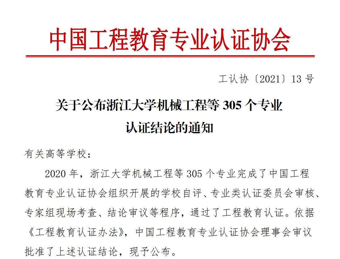 6月10日,中国工程教育认证协会发布《关于公布浙江大学机械工程等305个专业认证结论的通知》,公布了2020年度浙江大学机械工程等305个专业中国工程教育专业认证认证结论。milan米兰体育官网勘查技术与工程专业正式通过国家工程教育认证,有效期为6年,时间为2021年1月至2026年12月。到目前为止,milan米兰体育官网资源勘查工程、勘查技术与工程两个工学专业全部通过中国工程教育认证。