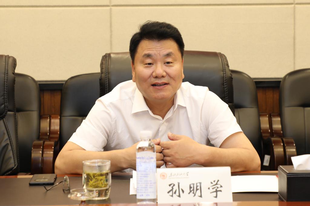 校党委书记孙明学致欢迎辞。他对何文渊及大庆油田长期以来为学校办学提供的鼎力支持表示感谢。他指出,“地质资源与地质工程”学科是学校的骨干学科、特色学科,何总在构造地质学和油气勘探评价领域开展了一系列具有全局性、关键性、前瞻性的研究工作,取得了突出的研究成果,聘请何总为特聘教授、兼职博士生导师是学校面向未来、开放办学、提升内涵、高质量发展的重要举措。他表示,学校将为何总开展工作提供全力支持,做好全方位服务。希望在何总的带动下,相关部门能够抓住大好契机、攻坚克难,加快高层次教学、科研团队建设,提高学科团队自主创新能力,促进协同创新和联合攻关,组成大团队、形成大联盟、拿下大项目、产出大成果,为“强陆、拓海、壮新”的“三步走”发展战略,为高水平百年大学建设,为石油石化事业振兴和国家能源安全贡献力量。