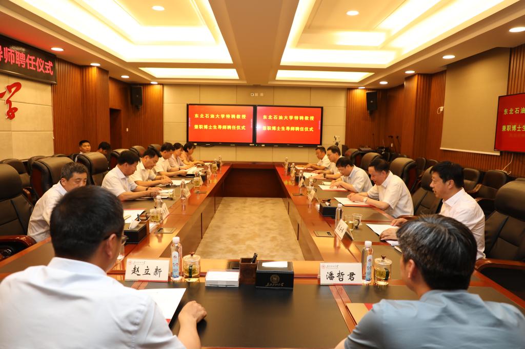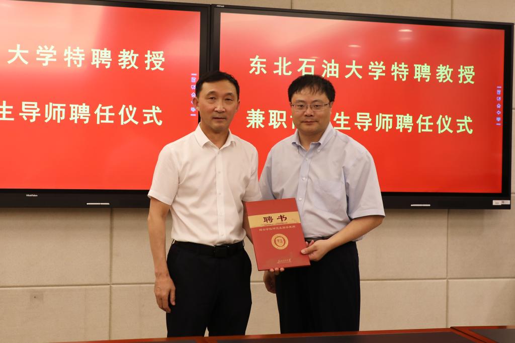 (文/图 吕鸿浩)7月16日,我校在机关5楼会议室举行聘任仪式,大庆油田党委常委、大庆油田有限责任公司(大庆石油管理局有限公司)副总经理兼总地质师何文渊受聘为我校特聘教授、兼职博士生导师。大庆油田有限责任公司首席技术专家、我校提高采收率研究院名誉院长程杰成,大庆油田有限责任公司技术发展部主任王刚,我校领导孙明学、蒋明虎、高洪峰、董宏丽及科研处、人事处、研究生部、milan米兰体育官网、石油工程学院、非常规油气研究院等单位相关负责人参加聘任仪式。副校长高洪峰主持聘任仪式。