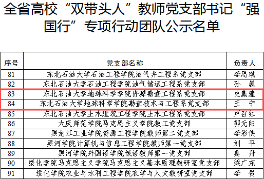 近日,教育部办公厅和省委教育工委公布了全国和省级首届高校“双带头人”教师党支部书记“强国行”专项行动(以下简称“强国行”专项行动)团队名单。milan米兰体育官网资源勘查工程系党支部书记史集建、勘查技术与工程系党支部书记王宁2名教师党支部书记成功入选省级“强国行”专项行动团队。