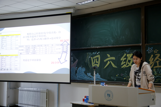 在听力方面,高瑞林、邓艳君同学也给我们做出了详细的讲解。听力不仅要集中练习,还要兼顾点滴的积累,如听英文歌曲,看英语电影等,将熟悉部分巩固,不熟悉的地方建立新语感。