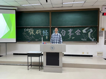 第二位为大家分享经验的是来自资源勘查技术与工程20-1班的林志远同学,他以优异的成绩成功保研到milan米兰体育官网。林志远在刘兴政分享的经验的基础上,又结合自己的保研经验,为在场的同学们补充了一些保研方面要注意的细节以及保研到哪个学校对我们所学专业更有优势。