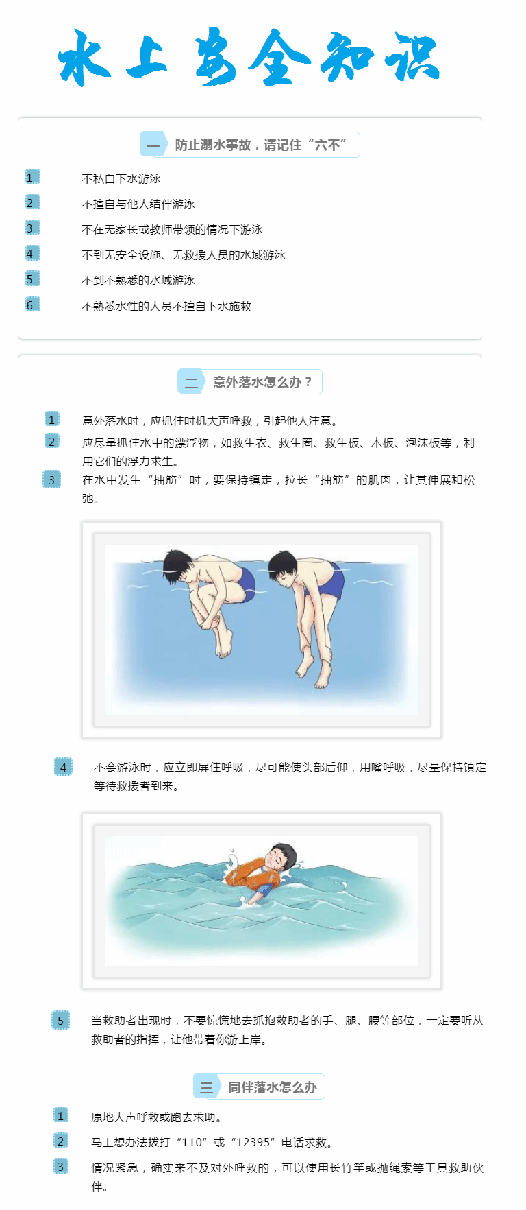3.了解求救知识。若发现江河水域出现异常状况或自身面临安全风险时,应迅速撤离至安全地带,并立即报告给学院相关部门或直接拨打当地应急救援电话。