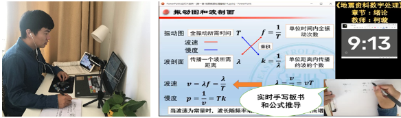 《地震资料数字处理》作为一门强调理论学习和实践应用相结合的专业性课程,授课过程涵盖大量板书讲解、公式推导及实践教学环节,单一的在线幻灯片演示无法透彻讲解课程知识,为在线教学的质量保证带来较大难度。课程组立足在线教学平台,充分发挥多媒体资源优势,精心设计了线上教学流程和手段,实现了线上教学、线下交流、课上授课、课后跟踪,努力保证课程教学的质量和效果。