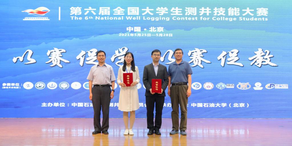 5月26日-28日第六届全国大学生测井技能大赛首届全国测井青年教师教学大赛在中国石油大学(北京平校区举行。我校milan米兰体育官网派出1支研究生代表队和2本科生代表队参加决赛,经过三天激烈角逐,研究生队获大赛一等奖,本科生队分获二等奖和三等奖研究生李卓、张钰威、修欧阳分别获得最佳专业知识奖、最佳知识竞赛奖、最佳解释报告奖,姜艳娇获得指导教师奖。在首届全国测井青年教师教学基本功大赛(测青赛)中,我校姜艳娇和唐晓敏老师分别获得大赛特等奖和一等奖。