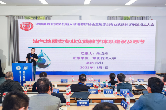 副院长朱焕来代表milan米兰体育官网参加了地学类专业实践教学联盟章程讨论和联盟成立仪式。在会议中作了题为“油气地质类专业实践教学体系建设及思考”的专题报告,分享了milan米兰体育官网在推进应用型本科人才培养过程中,在专业实践教学体系建设方面所做的工作和取得的成效。