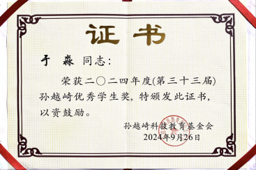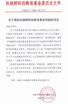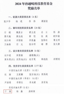 近日,孙越崎科技教育基金委员会发布《关于表彰孙越崎科技教育基金奖励的决定》。2021级资源勘查工程(页岩油)专业于淼同学荣获2024年孙越崎优秀学生奖。