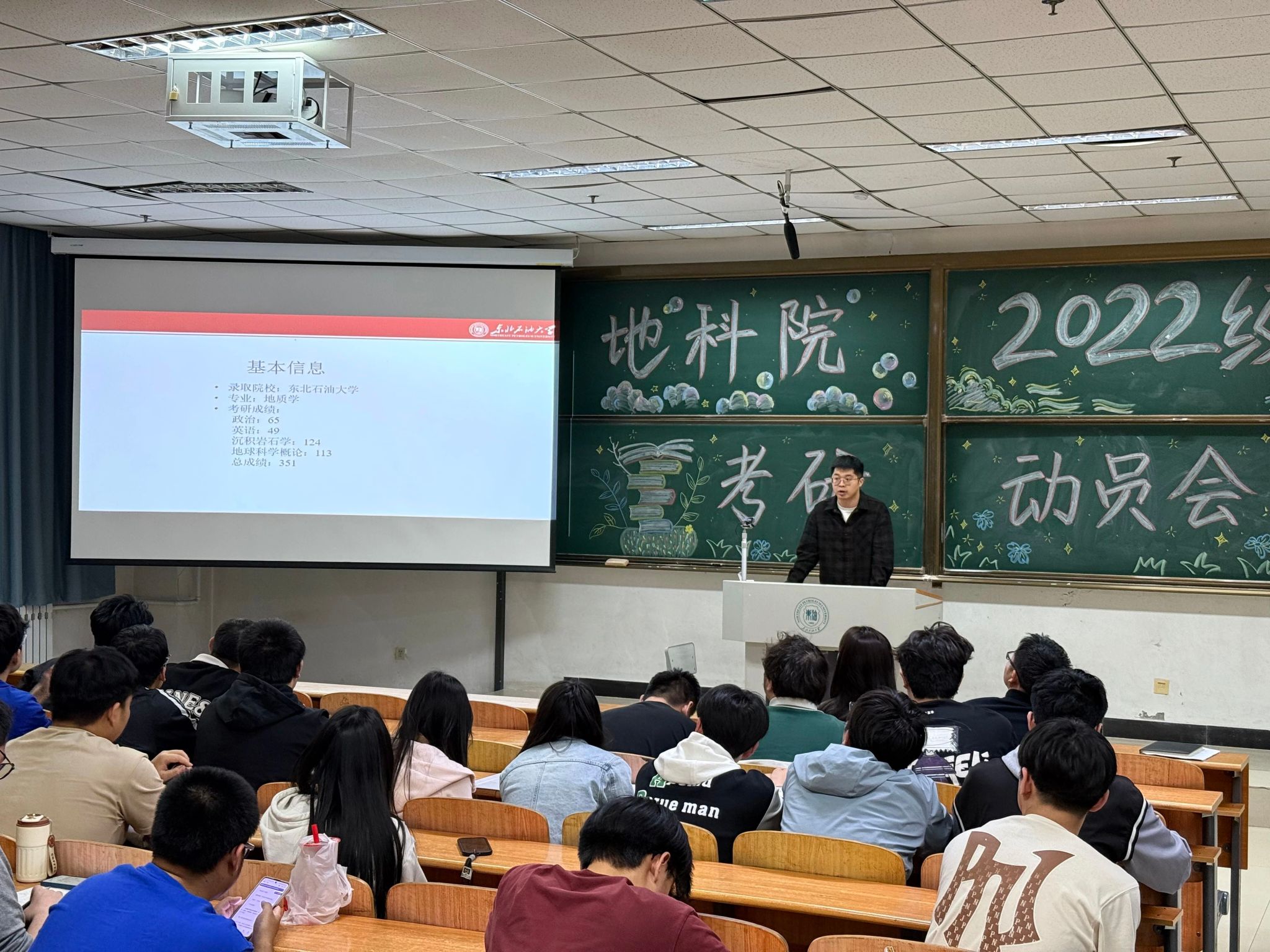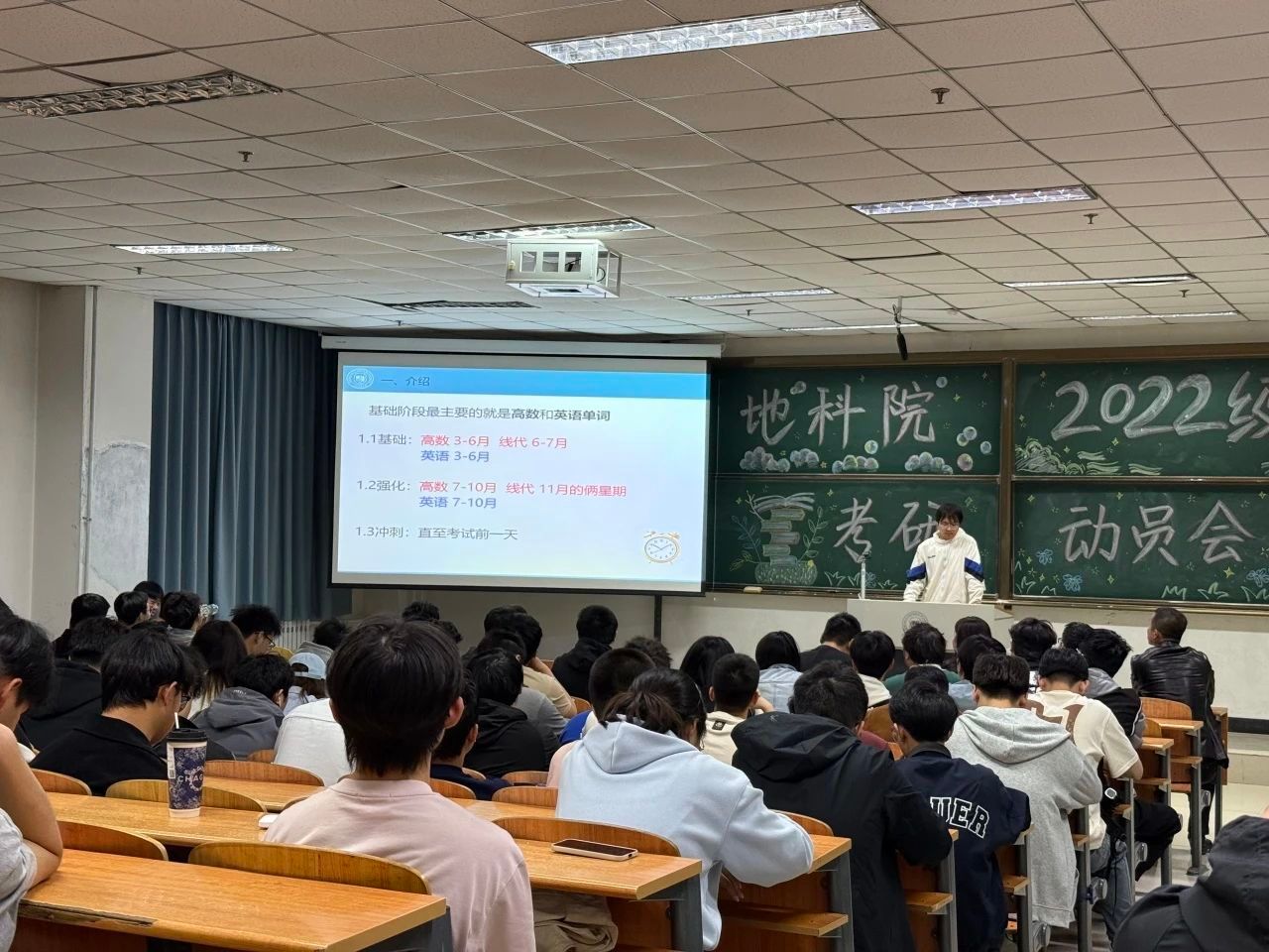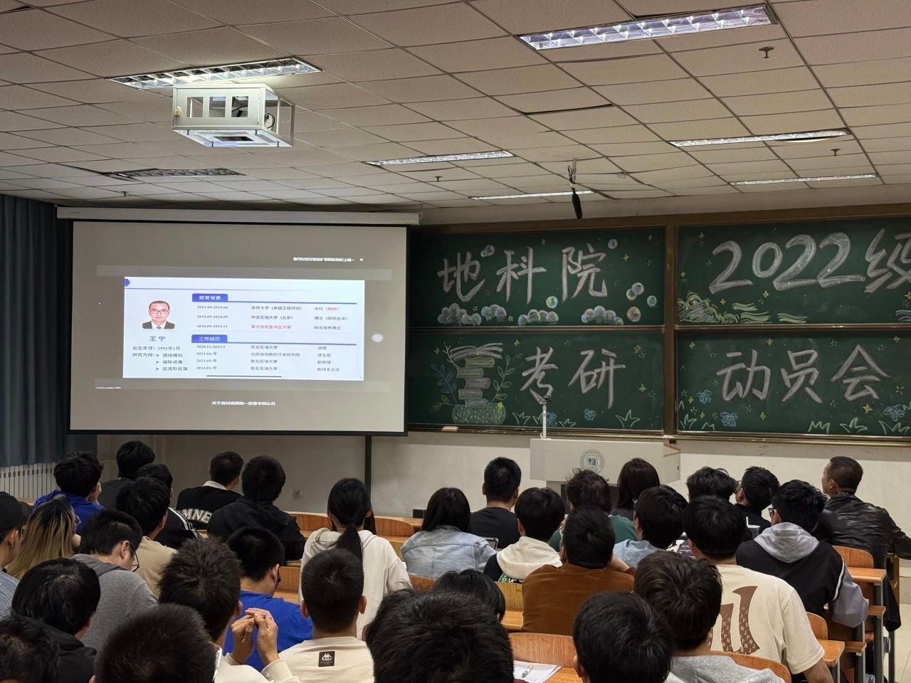 为激发学生考研热情,助力学子科学规划备考,5月15日晚,milan米兰体育官网于教学主楼C102举行“拼搏今朝,收获未来”2022级考研动员会。学院党委副书记王钢、资源勘查系主任蒋飞、勘查技术系主任王宁、2022级辅导员李海悦、优秀研究生代表、2021级优秀考研学生代表以及2022级本科生参会。